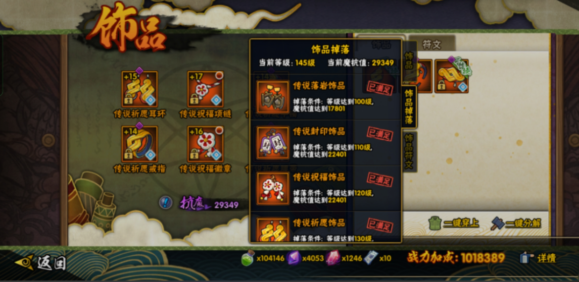 100级前优先将诺言系列饰品强化至8级即可,保留资源用于后期更高阶装备。100-120级阶段集中强化抗魔值最高的橙色饰品至15-17级,同时保留部分秘术之尘用于后续版本更新。120级后可将主力饰品逐步提升至19级或更高,但需注意20级后每级强化收益递减,需权衡资源投入与战力提升比例。