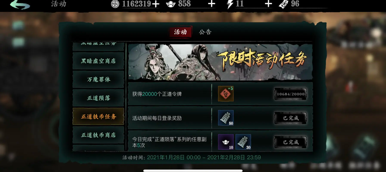 获取正道铁币的主要途径包括完成正道副本和限时任务。正道副本分为不同难度,其中逆天难度性价比最高,消耗6把钥匙可刷3次,每次约产出1000铁币。限时任务如正道铁币任务也会提供大量铁币奖励,但这类任务通常有阶段性目标,完成第一阶段后可解锁后续更高奖励的任务。万魔副本虽然也能产出铁币,但效率较低,适合不想反复挑战正道本的玩家。