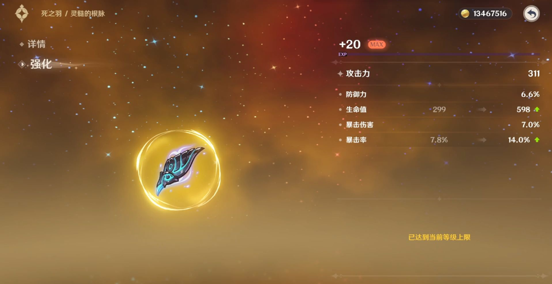 每次强化会随机提升一条副属性,所以建议分阶段强化,比如先拉到+4看看是否出有效词条。如果连续歪到防御力或生命值这类非核心属性,可以考虑及时止损。三词条的圣遗物在+4时会随机补一条新词条,有机会赌出双暴,但四词条圣遗物稳定性更高。