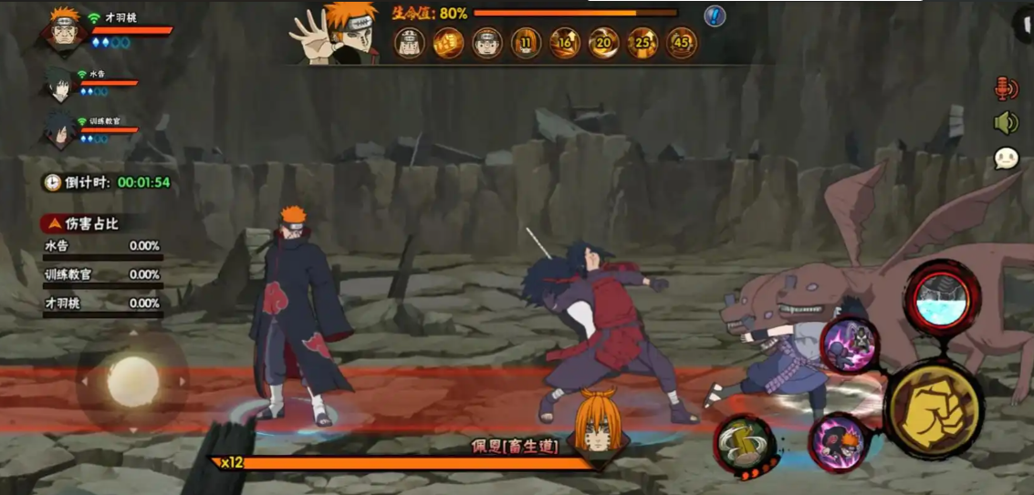 进入副本前要选择合适的忍者,优先选技能范围广且输出稳定的角色,比如奇拉比、秽土三代、照美冥等。第一阶段目标是拯救村民,通过攻击清理人偶来保护村民,畜生道会召唤翼龙通灵兽进行直线攻击,地图上有红线提示,记得使用土流壁秘卷抵挡。救人数量达到20后会解锁新地图,这时要击退修罗道、畜生道和小南三个首领,建议战力高的队伍去打首领,战力低的继续救人。
