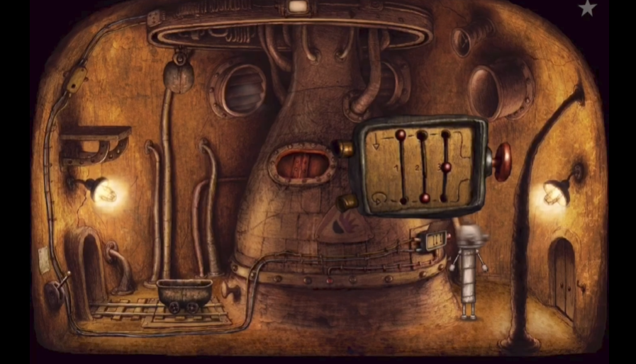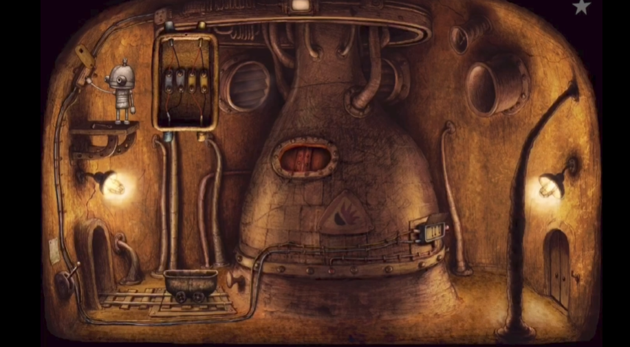 机械迷城第四关的核心谜题在于调整锅炉房内的电线连接以改变吊爪的旋转方向。进入关卡后首先需要取得墙上的钥匙,随后点击锅炉旁闪烁的红色指示灯,右侧控制箱会解锁。控制箱内有三组开关,分别对应吊爪的三次动作:第一组开关下拉设置为循环一圈,第二组开关上拉设置为抓取动作,第三组开关下拉再次设置为循环。完成设置后需立即按下红色启动按钮,并迅速缩回身体跳上矿车等待吊爪抓取。