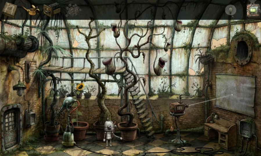 如果卡在植物房环节也别慌,这里需要先完成加热催熟向日葵的步骤。把加热器推到空花盆前种下花苗,启动开关后向日葵瞬间成熟,摇一摇就能掉落葵花籽。记得顺手拿走右边植物盆里的黄色叉子,等猪笼草长大后用它架住植物嘴,伸手掏里面的放大镜。这时候会有蝴蝶停在窗边,用放大镜观察并记住它翅膀的花纹,这个图案后面要点亮在油灯上。