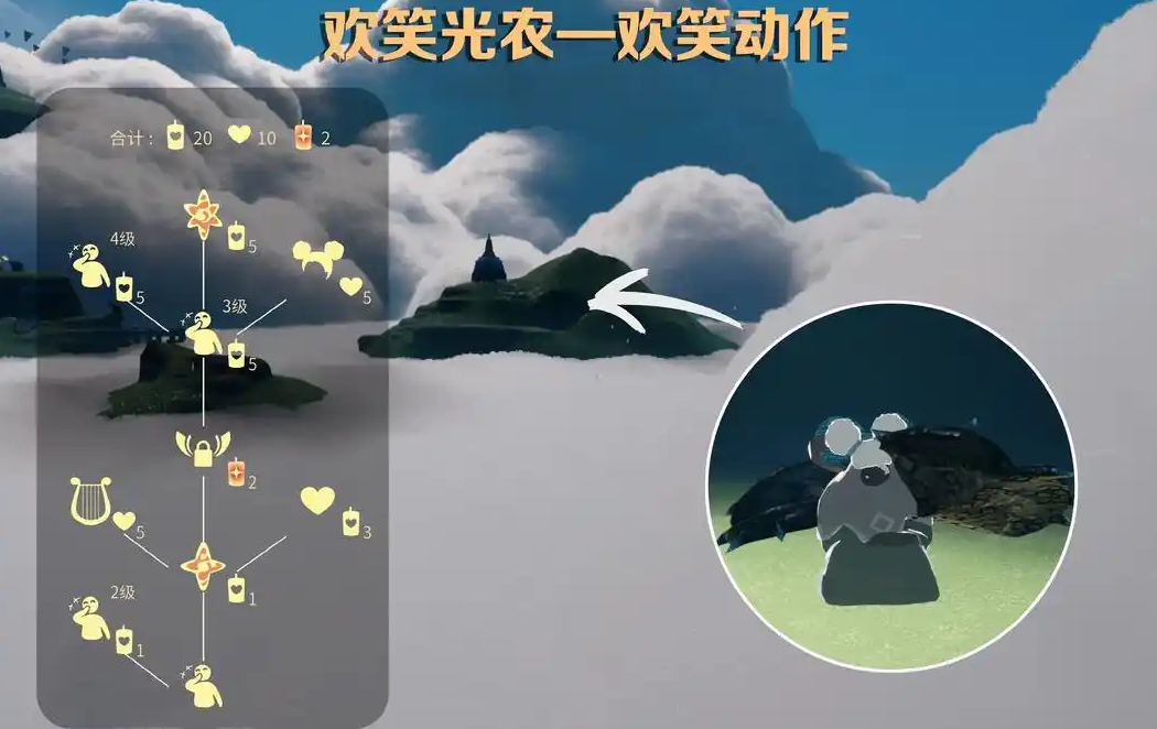 完成所有先祖的寻找后,玩家可以在遇境中与这些先祖互动,使用蜡烛和爱心兑换各种装饰物品和动作升级。每个先祖提供的兑换物品各不相同,需要根据个人喜好合理分配资源。部分高级动作需要多次升级才能完全解锁,这需要玩家持续收集游戏内的资源。云野作为早期开放的地图,其先祖系统为玩家提供了基础的动作和装扮,是后续地图探索的重要基础。