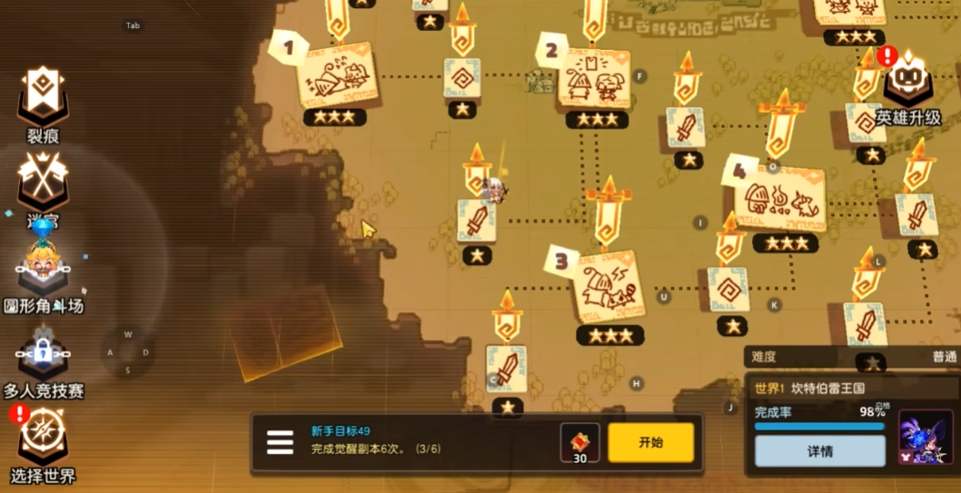 世界1作为游戏初期的核心探索区域,包含7个主线关卡及10个支线任务,需通过解谜、战斗和交互完成全收集。关键收集物分为装备、时装、黄宝石、宝箱、地图、祭坛等类别,各关卡采用统一图标标识:墨镜代表装备,星星为时装,球状图标对应机关,太阳是宝箱,爱心标记黄宝石,云朵表示祭坛,彩虹则为山洞入口。全收集需注意部分道具需按特定顺序获取,例如1-4关卡需优先取得跑鞋再完成任务,1-7关卡隐藏宝箱需在战斗时从上方通道进入。