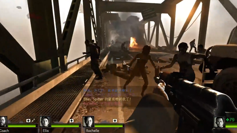 桥梁开局阶段需控制资源消耗,优先清理普通感染者以减少后续压力。队伍应保持紧凑阵型,避免落单被特感控制。遇到Smoker或Jockey时需立即集火解救队友。桥梁中段的起重机操作是关键节点,建议由生命值较高的队员执行,其余成员需集中火力阻挡尸潮,并在起重机启动后迅速投掷燃烧瓶阻断敌人路径。若出现Tank,需利用桥梁两侧车辆作为掩体进行周旋。