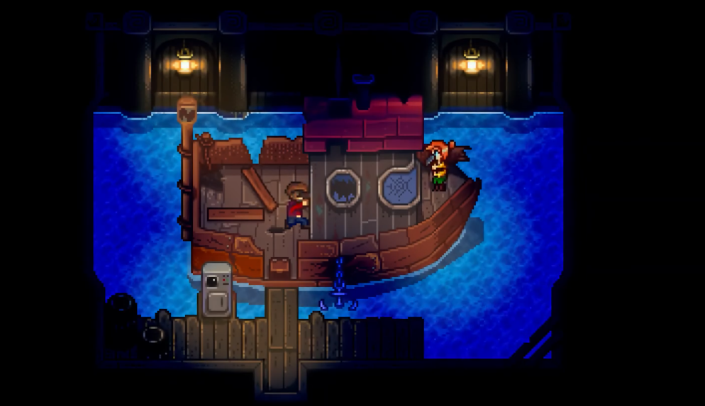 到了鱼店会发现平时锁着的后门突然能进去了,里面停着一艘破破烂烂的老船。这时候需要帮忙收集三样东西来修船:200个硬木用来补船身,5个电池组修售票机,还有5个铱锭做船锚。硬木可以去秘密森林砍大树桩,电池组得靠避雷针在雷雨天收集,铱锭嘛就得去矿洞深处多挖挖铱矿石了。把这些材料都交给威利后,再回家睡一觉,第二天就能正式开启姜岛之旅啦。