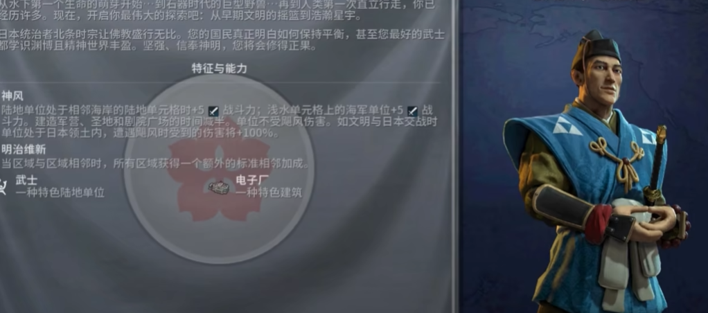 军事发展方面需利用武士单位受伤不减战力的特性,配合神风提供的海岸+5战斗力形成局部防御优势。远古时代以3弓箭手+2棒勇士为基本配置,中世纪转型武士海配合海军单位控制海域。宗教路线并非必选,但若选择发教则需抢占圣地科技并利用半价圣地快速积累信仰值,通过购买传教士巩固领土内宗教影响力。文化胜利是日本最稳定的路线,需在古典时期完成剧院广场的基础布局。