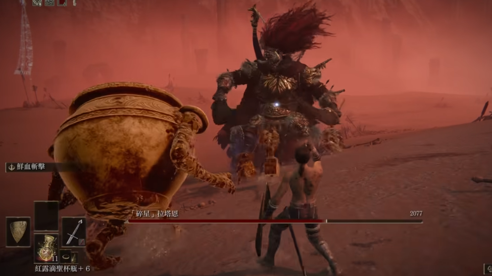 装备选择上,出血武器效果不错,比如尸山血海或狗牙。法师可以用陨石术远程消耗,但注意别被近身。护符带增加血量和耐力的,比如黄金树的恩惠。骨灰推荐仿生泪滴或黑刀,能帮你分担压力。战斗区域可以骑马,多利用机动性,马死了立刻用圣杯瓶复活。