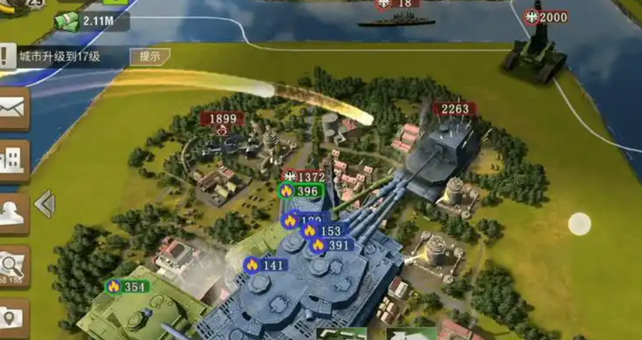 兵力整备阶段需确保部队涵盖不同兵种以应对多样化防御。对于高等级城市,建议与同盟协同作战,单打独斗风险较高。攻城时优先摧毁敌方炮塔等防御设施,攻城车应保持120距离的安全站位,利用坦克吸引火力后快速后撤至射程外。火箭炮对车辆和建筑有显著杀伤力,但需配合侦察单位提供视野。陆军部队需注意食物和汽油补给,否则会持续损耗兵力。士气系统会影响作战效率,士气归零的部队将按比例减员。