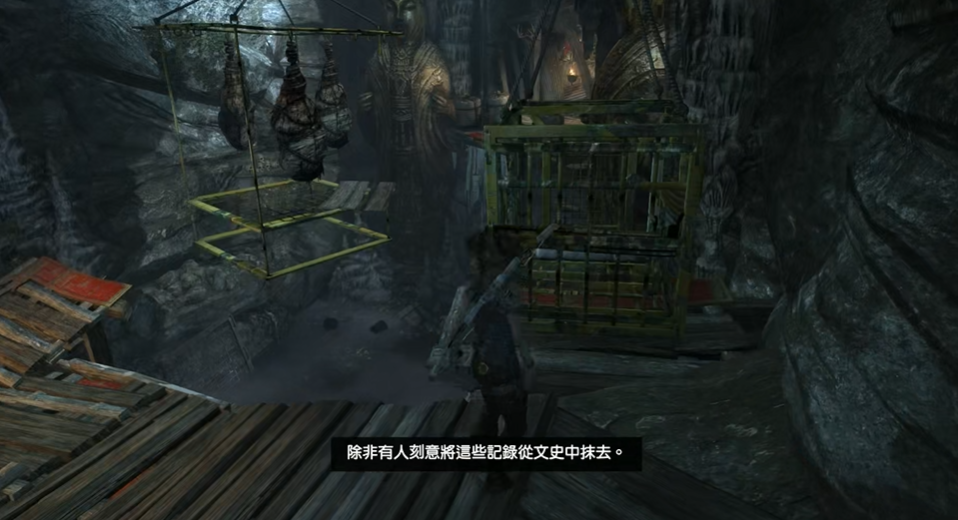 墓室中的机关往往需要结合物理机制来解决。比如在失落探险家古墓中,你需要摧毁支撑飞机的多个支柱,让机身一部分坍塌,从而爬上去拿宝藏。进入洞穴后先往左手边走,爬上第二层石阶,能看到地下的三个灯笼。把它们扔到裹有布条的木柱上,再用弓箭射下悬挂死尸头上的灯笼,使木柱着火。接着推倒燃烧的木柱,让它落下引燃下一个木柱。最后一个木柱的点燃方式更复杂,需要到洞穴右手边的高地,先把火盆射落,再攀上货物堆抓住横木,让火盆摆荡到对面点燃货物,最终通过细线引燃最后一个木柱。