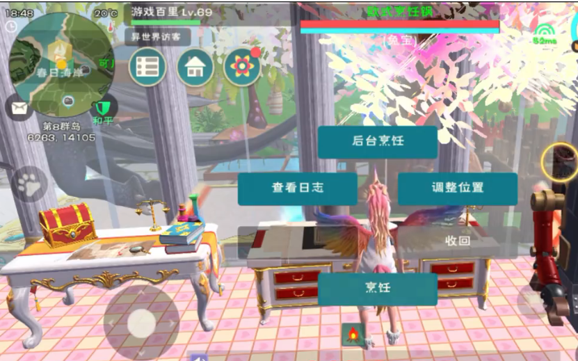 接下来需要用到烹饪锅,可以在家园里建造,也可以临时在野外放一个。靠近烹饪锅点击交互按钮选择烹饪,然后把优质肉块和生羊排放进去。系统不会直接显示这是狼王饲料,但别担心,只要材料放对了就能做出来。点击开始制作,稍等一会儿就能拿到成品。建议一次性多做一些,毕竟驯服狼王可不是一包饲料就能搞定的事。
