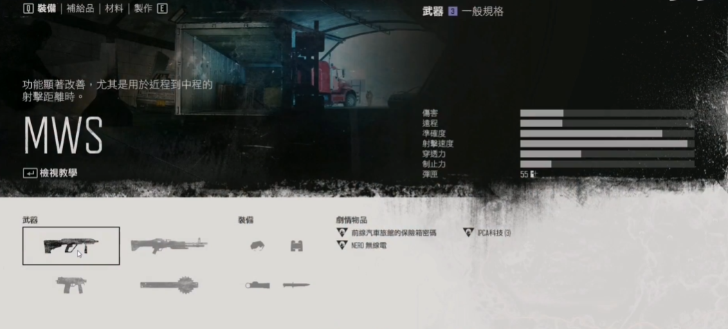 在游戏前期,选择合适的武器能让你更轻松应对各种威胁。MWS 9mm冲锋枪是个不错的开局选择,射速快且容易控制,对付初期敌人绰绰有余。虽然伤害不算顶尖,但足够应付大部分战斗,完成杯子溪集镇守卫任务就能解锁。SAP9手枪也是早期容易获得的武器,虽然杀伤力一般,但弹药充足操作简单,适合紧急自卫或对付落单目标。信号枪虽然不算传统武器,但能有效引开僵尸群,为探索和逃生创造机会。