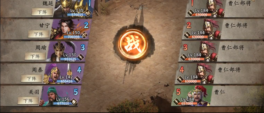 关羽作为首发武将,需装备极霸下套装并佩戴勋章。若起手觉醒则直接释放战法,否则保留至最后一排释放。曹操需穿戴极凤凰套装,负责承受第二NPC战法并将护盾传递给夏侯惇。夏侯惇搭配诸葛亮,装备极灵龟套装,以高输出快速击杀第二NPC,并利用残兵和血盾抵挡第三NPC战法。孟获携带曹仁,使用极烛龙套装,通过连撞和斩杀削弱第四NPC血量,为貂蝉创造收割条件。
