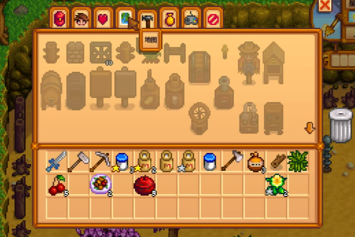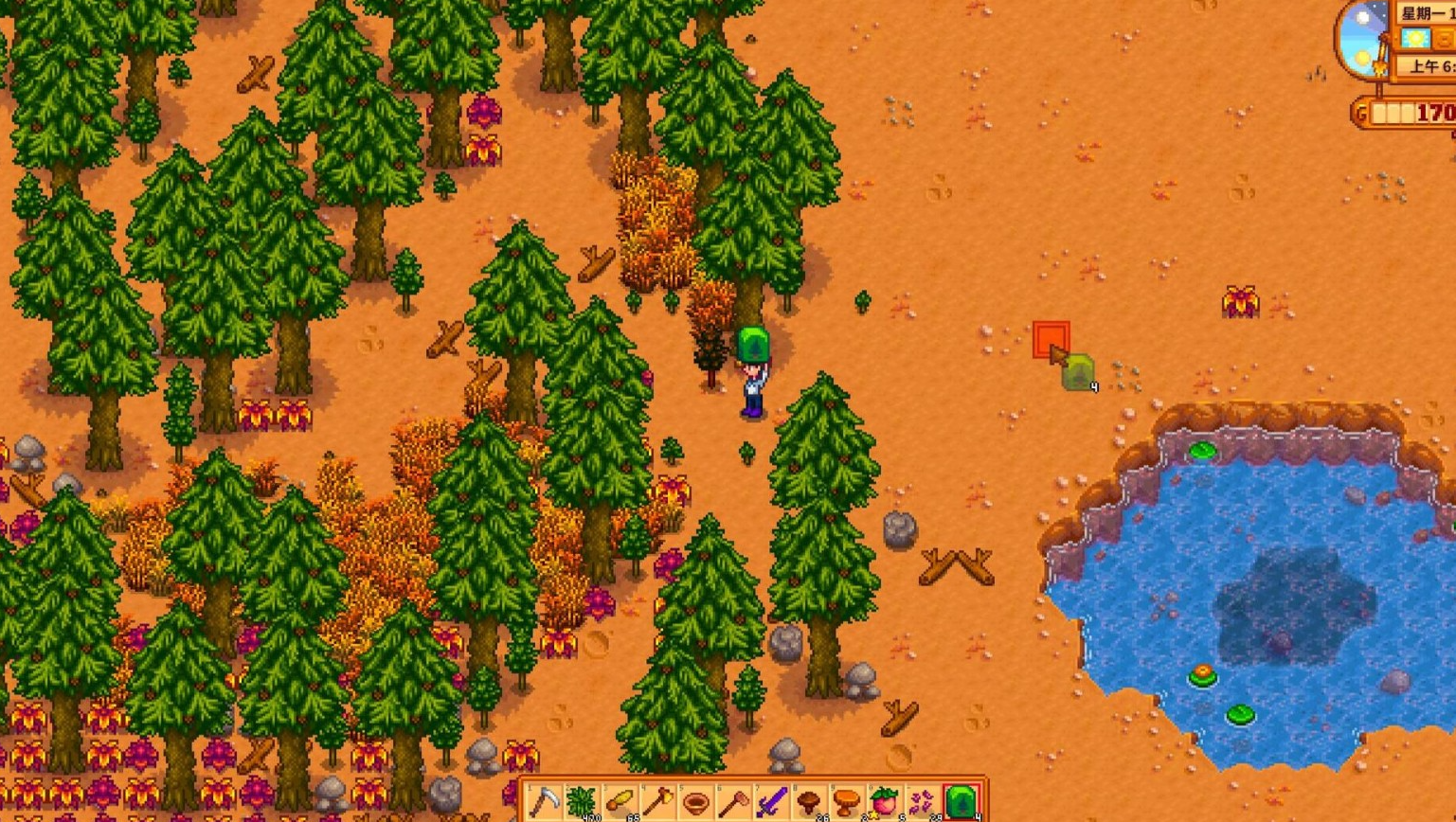 除了秘密森林,咱们的农场里也有大树桩可以砍,不过需要先把斧头升级到铜斧头才行。这些树桩砍完后会掉落硬木,偶尔还能爆出桃花心木种子,种下去以后长成大树还能继续砍。如果觉得农场里的树桩不够用,那就优先去秘密森林,那边的资源更集中,而且每天都会重新长出来,不用担心被砍光。