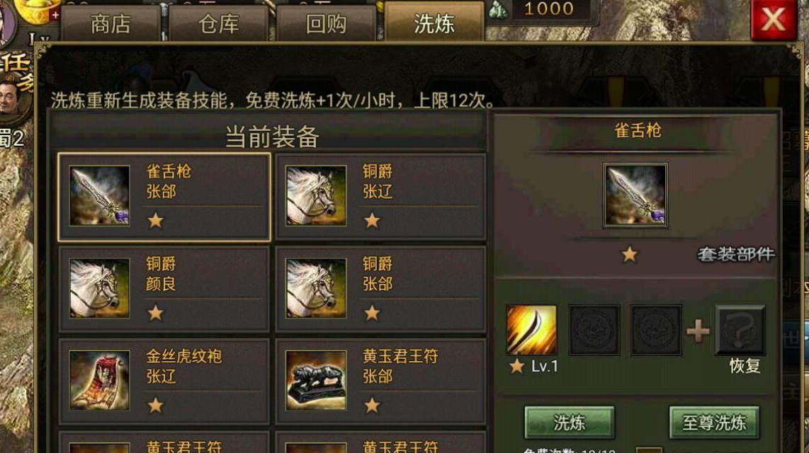 初期建议优先强化主力武将的核心装备,如武器和防具,以快速提升基础攻击和防御属性。随着游戏进程推进,可逐步将资源倾斜至特殊效果装备的精炼,例如增加暴击率或连击次数的宝石镶嵌装备。精炼过程中存在概率性成功机制,连续出现特定提示(如紫色募兵令)时可提高成功率,集中投入资源更高效。