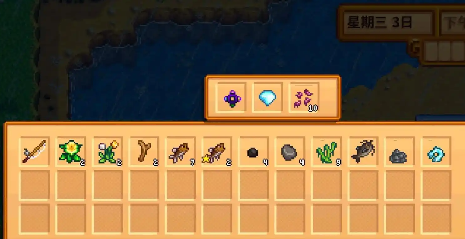每天可以去小镇的河边使用淘盘,有机会淘到蓝宝石。不过这种方式比较依赖运气,而且淘盘的获取需要一定进度,适合已经解锁淘盘的玩家顺手试试。虽然效率不高,但胜在轻松,不需要消耗体力。翻找垃圾桶也是一种获取蓝宝石的冷门方式。在矿洞41层之后,垃圾桶里偶尔会刷新出蓝宝石。不过翻垃圾桶有几率被村民看到,降低好感度,所以建议在村民不在附近时再尝试。虽然这种方式不太稳定,但对于顺路经过的玩家来说,也算是一个小惊喜。