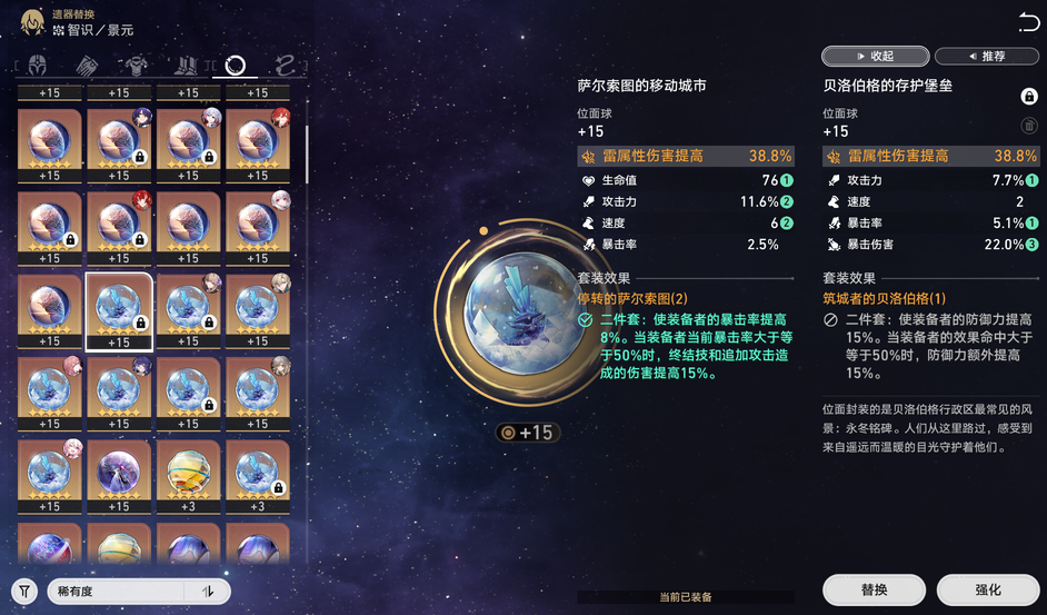 遗器方面,街头出身的拳王四件套与停转的萨尔索图二件套是最优选择,前者提升物理伤害与攻击力,后者增加暴击率及追击伤害。光锥推荐专属无可取代的东西或黑塔商店可兑换的记一位星神的陨落,前者兼顾生存与输出,后者专注攻击力加成。词条优先考虑暴击、暴伤和攻击力,确保反击伤害最大化。