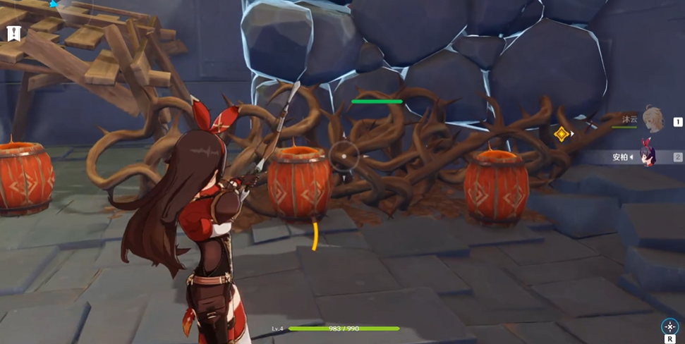 庙宇内部常设有需要火元素激活的机关方碑,使用火属性角色如安柏的蓄力射击可点燃方碑。部分区域被荆棘阻挡时,同样需要用火元素攻击清除障碍。在探索过程中要善用元素视野(PC端按鼠标中键,手机端点击左上角眼睛图标),这能帮助发现隐藏的可破坏石堆或机关,石堆后往往藏有宝箱或通往隐藏区域的路径。