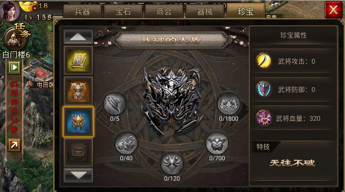 十珍宝中最厉害的就是君临天下效果,它能在斩将后根据敌我珍宝差距秒杀对方1-3排部队。不过要激活这个特效可不容易,得先把前面九件珍宝都完全修复才行。修复珍宝需要集齐所有部件碎片,每个部件又分为两个小部件,第二个小部件的暴击率特别低,经常要走很多次才能凑齐。