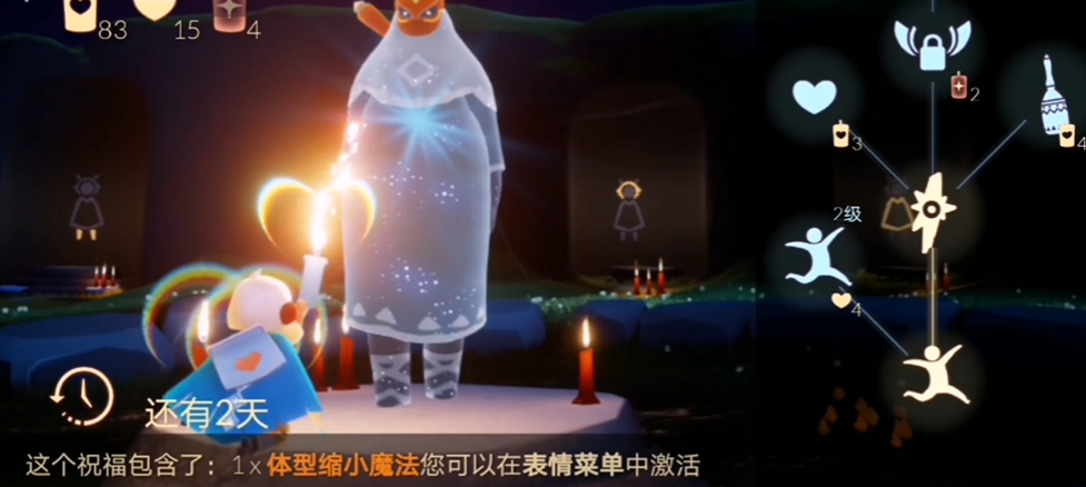 红狐狸面具作为核心兑换物品,其设计融合了动物特征与民俗元素,面具眼部采用镂空处理确保视野开阔。铃铛乐器音色清脆,演奏时伴随角色动作会产生节奏反馈。蹦跳动作共分四级,最高级表现为连续翻滚跳跃,适合用于社交互动或地形跨越。需注意先祖复刻期间通常持续五至六天,建议优先兑换面具再根据蜡烛储备考虑其他物品。