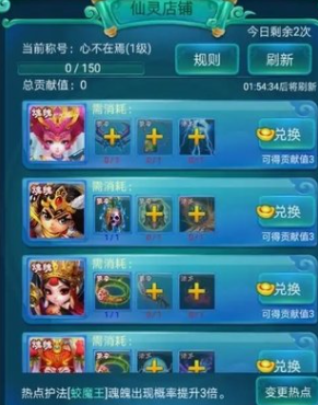 仙灵店铺是甘露的另一个重要来源,玩家可通过消耗三星装备或法术兑换贡献值,再用贡献值以1:10的比例兑换甘露。三星装备和法术可通过普通关卡探索或精英关卡挑战获得,探索时建议选择产出稳定的低难度关卡。每周五活跃度刷满后,若当前幻境宝物品质不佳,可利用免费重置机会刷新幻境。在幻境中屏蔽低价值宝物可避免浪费财富值,当财富值满时进入宝藏幻境必定包含当前普通幻境的两件宝物。