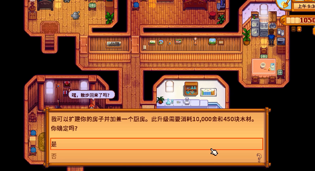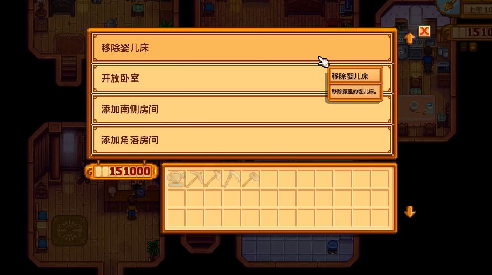 农舍的二次升级需要玩家准备65000金币和150个硬木。完成升级后,农舍将新增两个房间,包括一个空房间和一间带有婴儿床的婴儿房,同时厨房与卧室的空间也会扩大。这一升级是解锁后续家庭功能的重要步骤,建议玩家在资金充足时优先完成。
