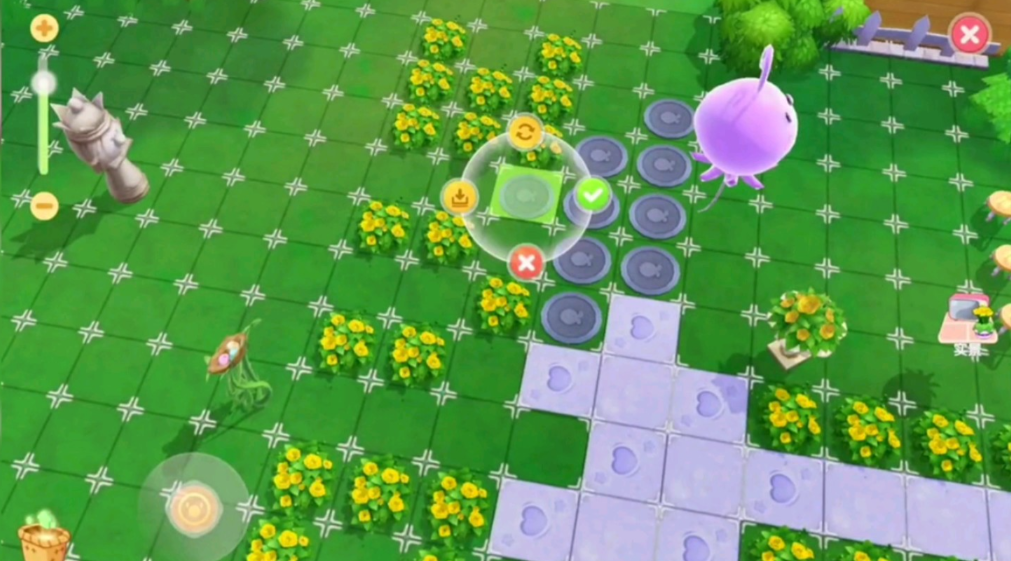 叠加过程中可能会遇到一些小问题,比如花架放不上去或者家具掉下来。这时候别着急,退出布置模式重新进入试试,有时候多调整几次角度就能成功。如果家具总是跟着圆石板一起移动,可以换个大点的家具先固定位置,等结构稳定后再换成想要的花架。背包里多准备几个花架会方便很多,这样就不用反复拆装啦。