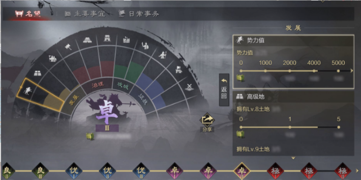扩大领土,关键是要提升名望值。名望值每增加100点,领地面积上限就会提高1格。名望值会随时间自然增长,每5分钟自动增加1点,但最快的提升方式是完成游戏内的名望任务。当名望值达到上限时,可以通过建造社稷坛来进一步提高名望上限,从而继续扩张领地。领地面积上限最高为450格,达到后就不再增加了。如果发现领地已经满了,暂时无法占领新的土地,可以考虑放弃一些低级领地,优先保留高级资源地。