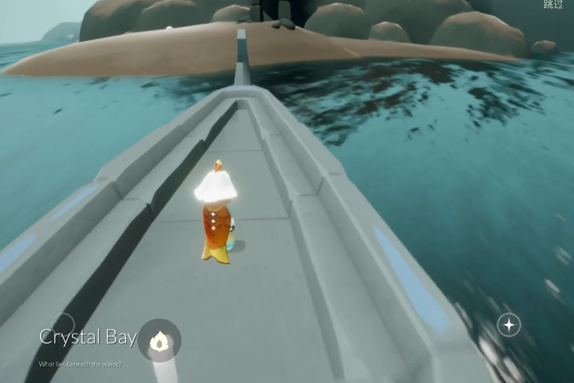 登上岛屿后,你会看到正前方有一个山洞,直接走进去。山洞深处会有一个发光的白色光圈,走上去并坐下。这时,周围的石碑会依次亮起,一段美妙的动画过后,一只友好的鳐鲲会出现并赋予你潜水的能力。解锁之后,你会发现面前水池的水位上升了,并且水下出现了一条通道,顺着这条通道往下走,才能真正进入那片开阔而神秘的海底世界。
