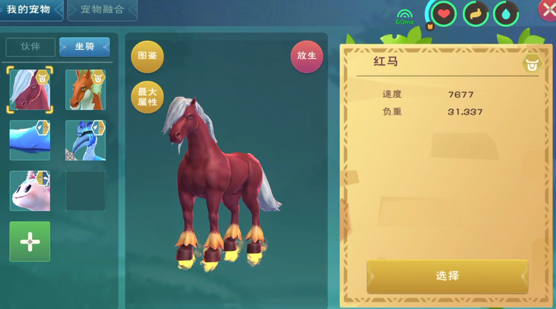 找到火马后先用木棒攻击它直到打晕为止,等火马进入眩晕状态时就可以开始喂养先前制作好的火马饲料了。火马在游戏里是一种性价比很高的坐骑选择,拥有七千五到八千的速度属性,虽然比黑马稍差一些但驯服难度相对较低。