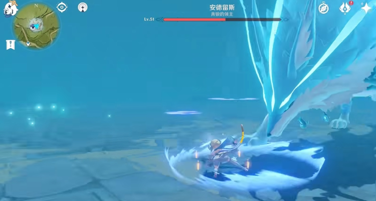 当狼王血量降至一半时,会进入第二阶段并召唤暴风雪环绕场地。此阶段狼王会绕场奔跑并定期向玩家冲刺,玩家需持续移动并锁定目标,在冲撞瞬间闪避。狼王攻击频率和伤害提升,但活动范围缩小,主要使用冰雹、扫尾等技能,建议全程优先躲避,待技能间歇期再反击。成功击败奔狼的领主后,玩家可以获得冰、岩、火元素升级碎片、武器原胚以及五星圣遗物等奖励。这个周本boss的刷新周期为5天,比其他世界boss更长,因此每周定期挑战能积累重要资源。
