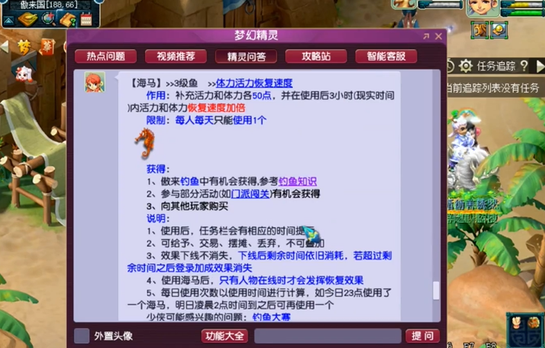 海马主要用来恢复和提升活力和体力的恢复速度,对于日常刷任务、跑活动来说,能帮你更高效地利用游戏时间。想要得到它,最直接的路子就是去游戏里的商城逛逛。在商城的强化材料或者其他道具分类里,你通常能直接找到海马,用仙玉或者金币就能买下来,非常方便直接。如果你不想花钱,那也可以留心游戏里定期推出的各种节日或者周末活动,完成这些活动指定的任务,有时候就能把海马作为奖励抱回家。
