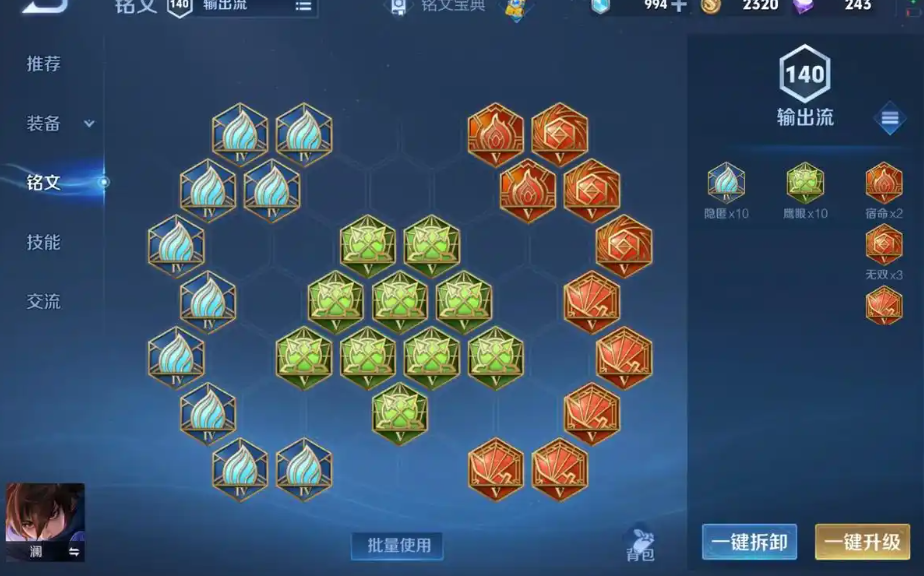 澜的技能机制与出装铭文紧密相关,二技能是主要输出和回复手段,命中多个目标时回复效果显著,因此出装注重冷却缩减和攻击力可以最大化技能频率和伤害,一技能用于位移和追击,大招提供控制,装备的移速和穿透属性帮助澜快速切入和退出战斗,铭文提供的属性进一步强化这种机动性和爆发力。