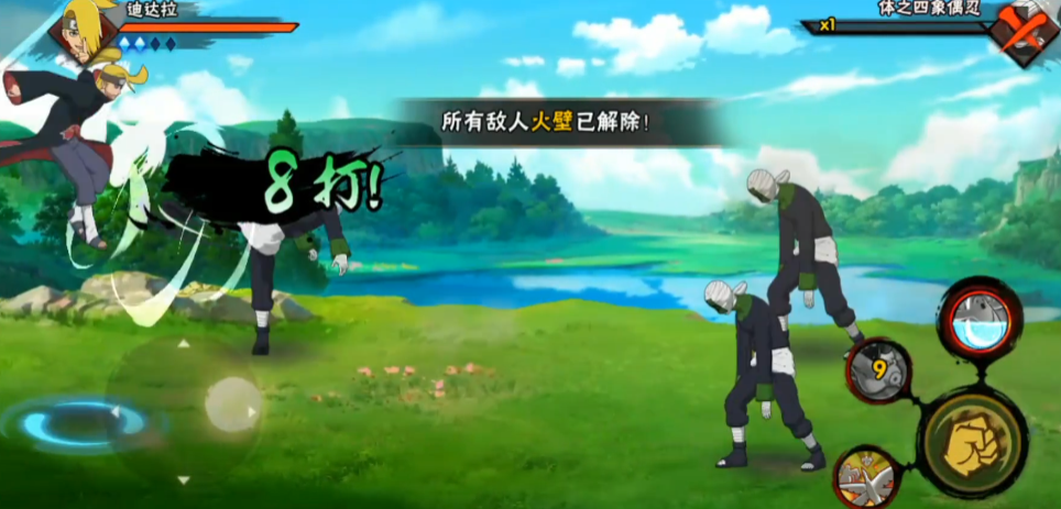 充分利用迪达拉的飞行能力和爆炸黏土技能应对真实瀑布中的各种障碍,第一关会遇到火之偶忍和土之偶忍的联合攻击,火之偶忍释放火焰,土之偶忍制造土流壁阻挡去路,利用迪达拉技能的飞行效果穿过火焰,结合空中普攻的Y轴位移特点在空中躲开墙体阻挡,操作得当可以实现无伤过关。