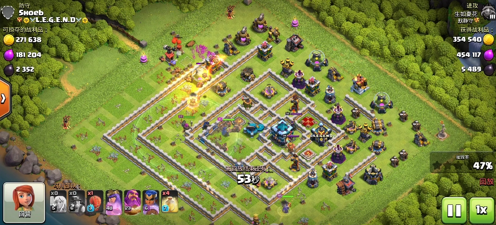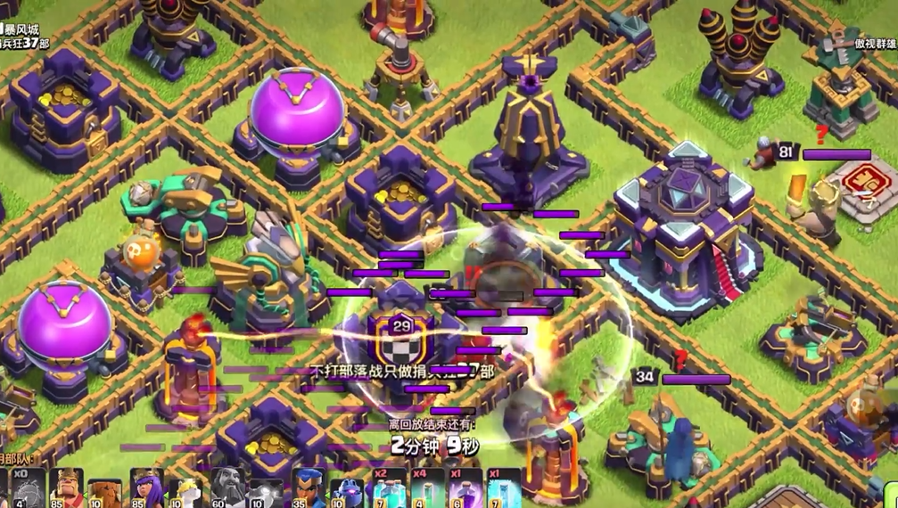 进攻开端,需要优先观察敌方阵型,理想的阵型是建筑较为密集、不过于分散,这有助于引导矿工的走向。前戏阶段通常由天女组合或双王承担,其任务是清理掉进攻路线一侧的外围建筑,并尽可能解决掉对后续矿工威胁较大的核心防御,如天鹰火炮、地狱之塔或敌方援军,为矿工开辟一条相对安全的通道。前戏结束后,主力矿工应从清理干净的侧面或预定路线集中下放,形成集群效应以快速突破防线。下兵时,大守护者应跟随矿工主力,为其提供光环增益与技能保护,而蛮王和女王则可以继续在侧翼清边或吸收火力。法术的施放时机需要精准判断,治疗法术应预判性地覆盖法师塔、炸弹塔等可能造成集中伤害的区域,确保矿工血量健康;狂暴法术则可在部队进入核心区域或天女被集火时使用,以加速摧毁关键建筑。