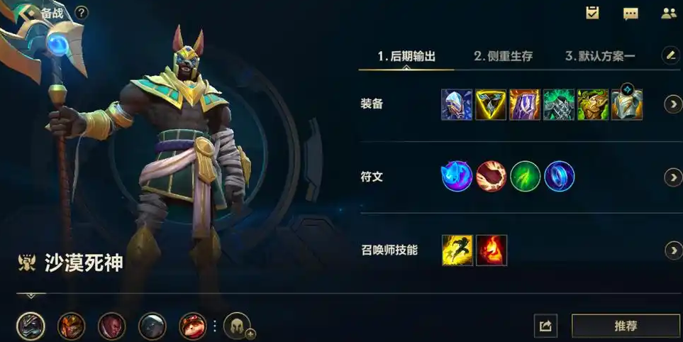 沙漠死神内瑟斯,也就是玩家们俗称的狗头,是一位典型的后期强势战士。他的核心玩法在于利用Q技能汲魂痛击通过补刀和击杀来无限叠加伤害,这使得他越到后期越强大。游戏前期,狗头在对线期相对弱势,因此首要任务是稳健发育。出门后可以考虑吃掉己方石头人野区的小型石头人,以获取微弱的经验优势。一级通常推荐学习E技能灵魂烈焰,利用其边缘范围进行远程补刀,这样可以避免与前期强势的上单英雄发生不必要的正面冲突,同时也能有效控制兵线,防止过快推线导致自己暴露在敌方打野的威胁之下。对线期的核心思路就是化身塔之子,将兵线控制在己方防御塔附近,专注于用Q技能补好每一个尾刀,安全地叠加Q技能的层数,为中后期奠定基础。