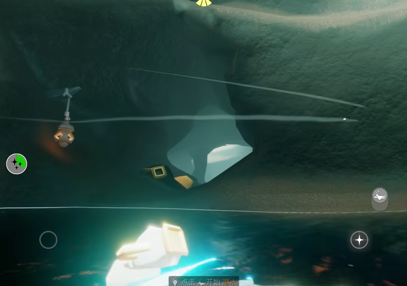 靠近那个洞口并触发交互指令后,你便能进入一个隐藏的空间。进入之后,你需要一直朝着内部游动,在幽深的海底隧道中探索前进,第二个小金人就放置在这片区域的尽头。当你靠近它时,同样点击收集标志,便能收获这个隐藏的光之翼。