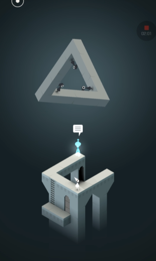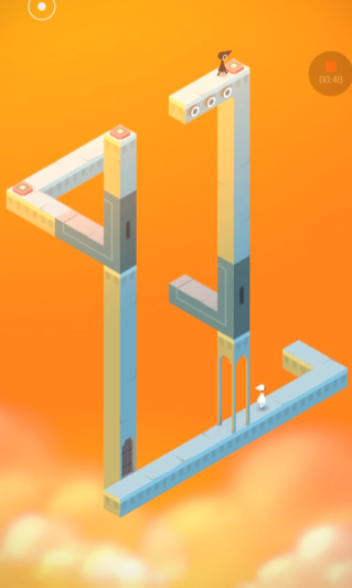 玩家可能面临乌鸦干扰的问题,需要在艾达试图返回时向下拉动带有三个圆点的机关,以升起障碍物阻挡乌鸦前进,确保艾达安全到达门口。此后,艾达会进入另一个洞口并与蓝色精灵互动,场景转换为紫色城堡部分。玩家需控制艾达移动至制高点,通过向左旋转机关来连接楼梯,并逐步向上攀登,以进入更高层的结构。
