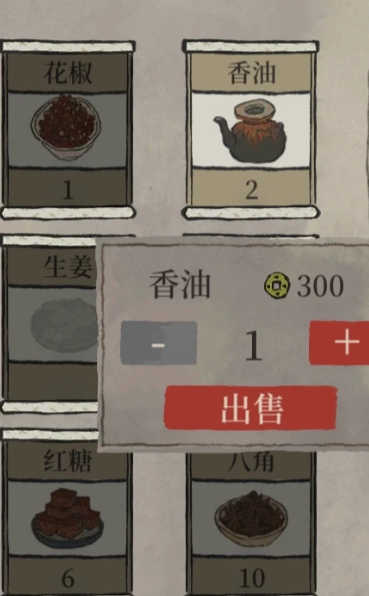 因为不同香料的获取概率和用途价值不同。像花椒、红糖这类相对常见的香料,由于获取概率较高,可以适度批量出售以换取铜钱。而像香油、胡椒这类较为稀有的香料,则建议尽量保留,因为它们可能用于完成特定食客的高价值订单或高级菜谱。一个管理技巧是,你可以将库存香料出售到刚好等于仓库容量的数量,这样既能领取新奖励,又能保持仓库运作。