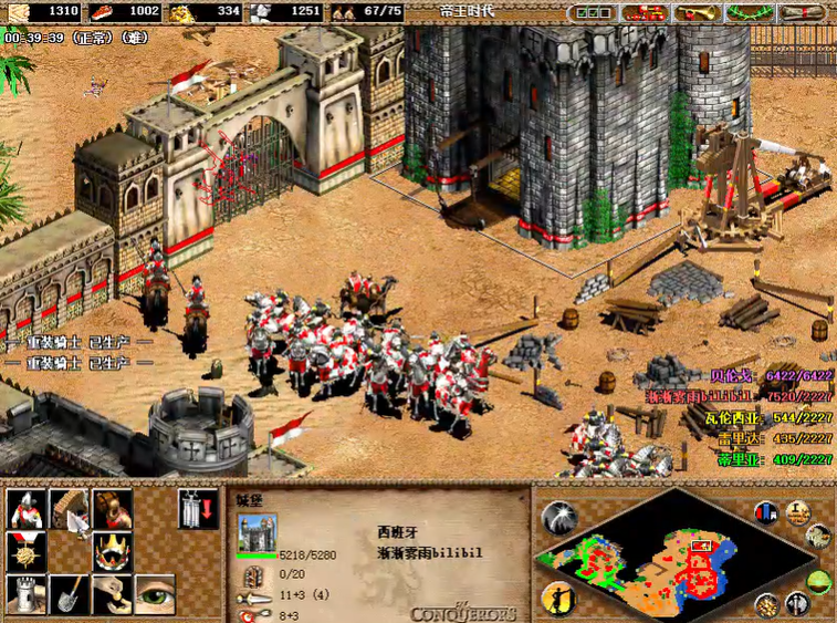 防守阶段的成败直接决定了本关的难度体验,敌人早期的攻势会非常猛烈,尤其前一两波攻击压力最大,因此抵达瓦伦西亚后应立刻着手构建防御体系。利用瓦伦西亚城外的桥梁等咽喉要道,建造石墙进行封锁是延缓敌军推进的有效手段。城内必须优先建造城堡、箭塔等防御建筑,并尽快训练僧侣单位,因为僧侣的招降能力在本关防守中扮演着极其重要的角色。通过招降敌人的高级近战单位,如游侠和勇者剑士,不仅能削弱敌方攻势,还能有效补充己方防御力量,形成良性循环。在经济建设上,要保证农民持续工作,特别是在安全区域开采石料和黄金,为持续建造防御工事和训练僧侣提供支持。