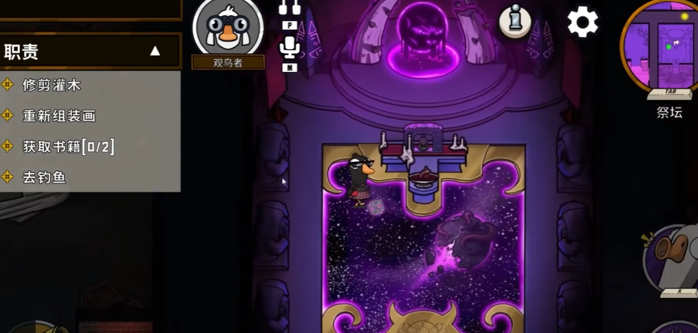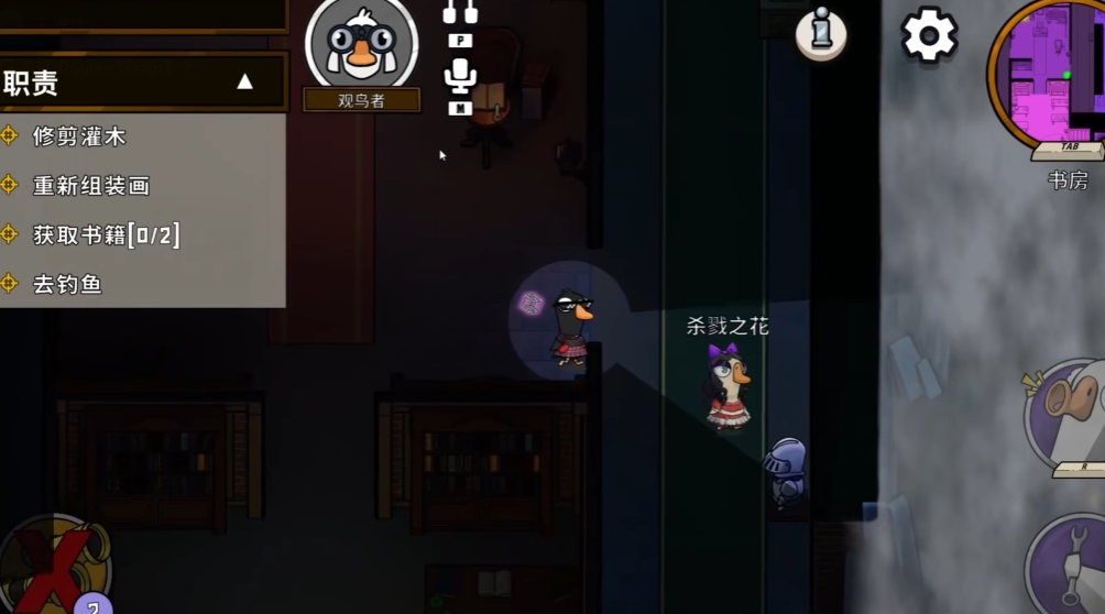 其核心技能是拥有独特的隔墙视野,允许玩家穿透墙壁观察另一侧特定区域的情况,从而为团队获取关键的情报和线索。作为鹅阵营的一员,观鸟者的终极目标与其他好人类似,即通过完成所有地图任务或是成功找出并淘汰所有隐藏的鸭子来赢得比赛。