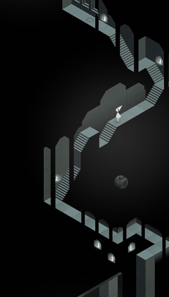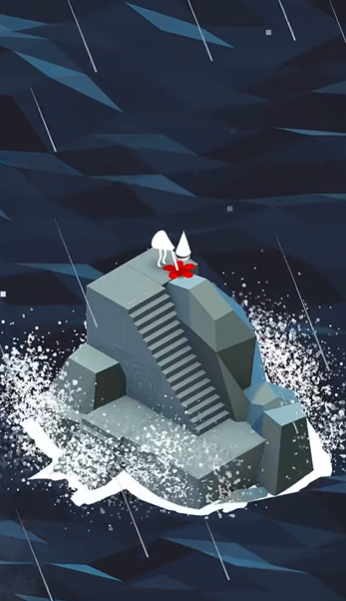红花的关卡是第九关斜坡,通关的核心是操作旋转阀门、移动图腾与各类机关,引领主角艾达不断向下探索,最终将初始获得的红花献予灵柩。关卡始于一个孤立的小岛,顶层有一朵显眼的红色花朵,控制艾达走上楼梯拾取它。拾取花朵后,沿着出现的白色楼梯或路径持续向下行走,下方的水位会随之下降,逐渐展现出隐藏的建筑结构。在下方会遇到一个旋转阀门,转动它可以使新的楼梯升起,让艾达能够继续下行并踩到机关按钮。此过程中需反复操作阀门,调整楼梯和平台的位置,为艾达铺平道路。