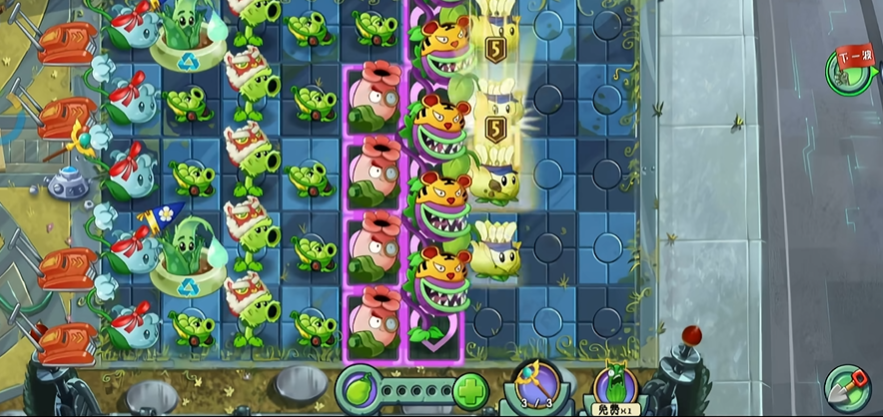 在拥有相对稳定的阳光收入后,就要着手构建你的核心攻击体系。你需要在陆地上补齐关键的输出植物,主要是玉米加农炮和冰西瓜投手。水路则需要进行重点布防,通常建议在水路的前三排放置忧郁菇,它能提供优秀的范围攻击能力。如果你的阳光还不足以立刻完成这个布局,可以在水路第一排先暂时放置大喷菇来过渡,它同样具有线性的穿透攻击效果。别忘了继续补充双子向日葵,为后续更昂贵的植物升级和南瓜罩的铺设储备充足阳光。