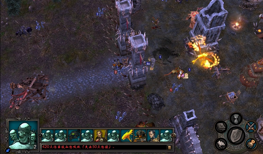 具体的技能选择上,黑暗魔法的优先级最高,需要尽早将其提升至专家级以解锁高级法术。其中的虚弱诅咒能大幅削弱敌方骷髅部队的攻击力,配合己方的肉盾单位可以形成有效的战场压制。召唤魔法是另一大支柱,其核心子技能黑暗再生能提供持续召唤低级亡灵生物的能力,丧尸之王则能直接强化召唤物的攻击与防御能力,这些召唤单位可以很好地吸引骷髅兵的火力或用于围剿残血敌人。防御术方面,抗魔结界和坚韧术能帮助部队抵挡魔法与物理伤害,由于骷髅兵通常数量庞大,扎实的防御技能是部队能持续作战的重要保障。