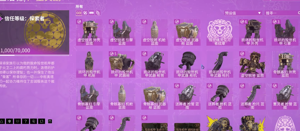 让虚空锐将在任务中登场,核心前提是完成其制作与装备流程。玩家需要从殁世幽都的Loid处,使用殁世械灵集团声望购买其蓝图与部件。购买主蓝图需要达到模仿者等级,而各个部件蓝图则需要达到见习者等级,总计需要消耗一万三千点声望。在获取所有蓝图后,前往铸造舱收集并制作所需的材料,完成所有部件的建造并最终组装出虚空锐将。