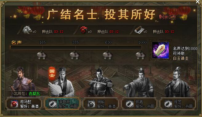 满足前置条件后,邓艾会出现在主城酒馆内,玩家需持续在酒馆与邓艾进行饮酒互动,逐步提升其好感度,直到邓艾达到心悦诚服的状态,即可直接完成招募,整个过程无需消耗稀有道具,仅需常规酒馆酒水资源,互动过程稳定无随机失败机制,只要坚持完成每日酒馆互动,就能稳定拿下这名武将,平民玩家与氪金玩家均可通过此方式获取,无付费专属获取渠道。