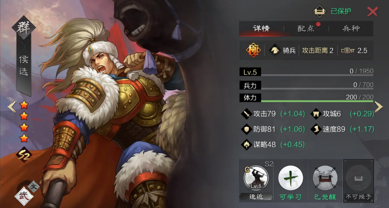 率土之滨五星公孙瓒的核心加点方案为全速度,这是适配其战法机制与阵容定位的唯一最优解,所有属性点均需投入速度属性,无需分配攻击、防御或谋略。公孙瓒的主战法动如雷震,核心效果是使我军群体追击战法发动率提升至100%,并提升追击战法伤害,而伤害提升幅度完全受速度属性影响,速度越高,增伤比例越强,同时更高的速度能让公孙瓒在战斗中优先行动,确保在队友输出前成功施加增益buff,避免因速度不足导致战法释放滞后,让队伍错失前两回合的爆发窗口期。其基础速度属性在骑兵武将中处于上游,全速度加点后能进一步拉开速度差,在多数对局中稳定抢占先手,为菜刀队、追击流阵容奠定输出基础。