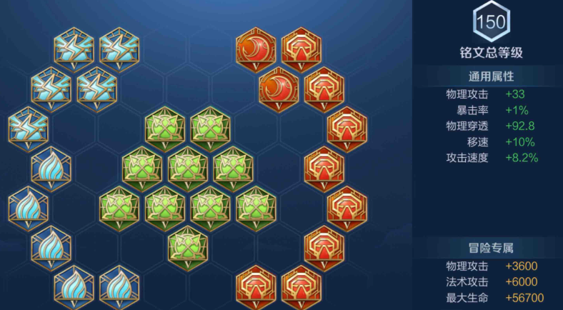 后续补出破军进一步拔高斩杀线,目标血量越低伤害越高,配合大招的斩杀效果可瞬间秒杀残血目标,面对敌方高护甲英雄时补出碎星锤,高额百分比穿透能无视坦度,对前排也能打出可观伤害,最后一件选择名刀司命,保命的同时保留反打机会,避免进场被集火蒸发,这套出装顺序兼顾发育节奏与伤害梯度,前期稳线不劣势,中期爆发拉满,后期可切C可打前排,全程伤害表现稳定。铭文搭配选择10异变、10鹰眼、10狩猎,百穿属性最大化技能与普攻伤害,移速加成提升支援与拉扯效率,攻速让普攻衔接更流畅,整体属性与出装完美契合,进一步放大伤害优势。