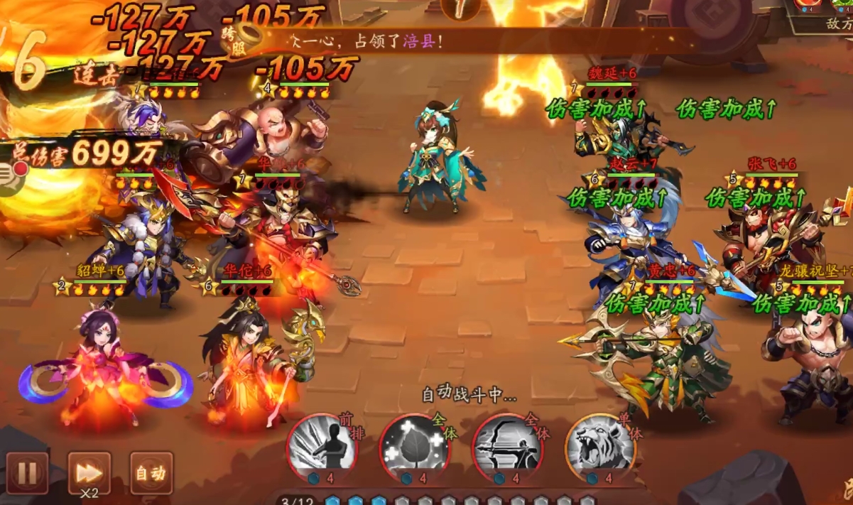 养成资源需优先倾斜张郃,重点提升暴击、元素伤害与无视防御属性,装备选增加元素伤害与吸血的套装,保证变身后持续作战能力。张郃化境5解锁必杀炽焰怒,变身后释放可打击多目标并清除减益,对带减益目标伤害翻倍,实战中需等变身再释放必杀,最大化爆发收益。阵容实战中,曹操先手控场后,张郃优先释放怒气技能叠加传导与断粮,待触发变身后,配合队友控制与增伤,释放必杀清理战场,集火目标死亡后张郃进入狂暴,攻防、暴击、吸血全面提升,持续压制敌方。