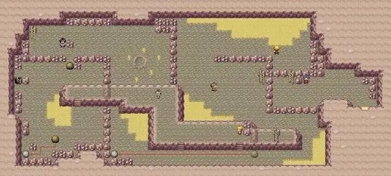抵达后站在三角陨石正下方位置按A键触发,陨石会开始移动,每一步都必须走最短路径、不多走任何一格,否则陨石立刻回到初始位置,解谜从头再来。第一步站在陨石正南按A;第二步向西走5格、向南1格按A;第三步向东5格、向北5格按A;第四步向东5格、向南5格按A;第五步向北3格、向西7格按A;第六步向东5格按A;第七步向西3格、向南2格按A;第八步向南1格、向西4格按A;第九步向东7格按A;第十步向西4格、向南1格按A;第十一步向北4格按A,按完这十一步,三角陨石会逐渐变红,最终回到中央碎裂,30级攻击形态代欧奇希斯直接出现进入对战。